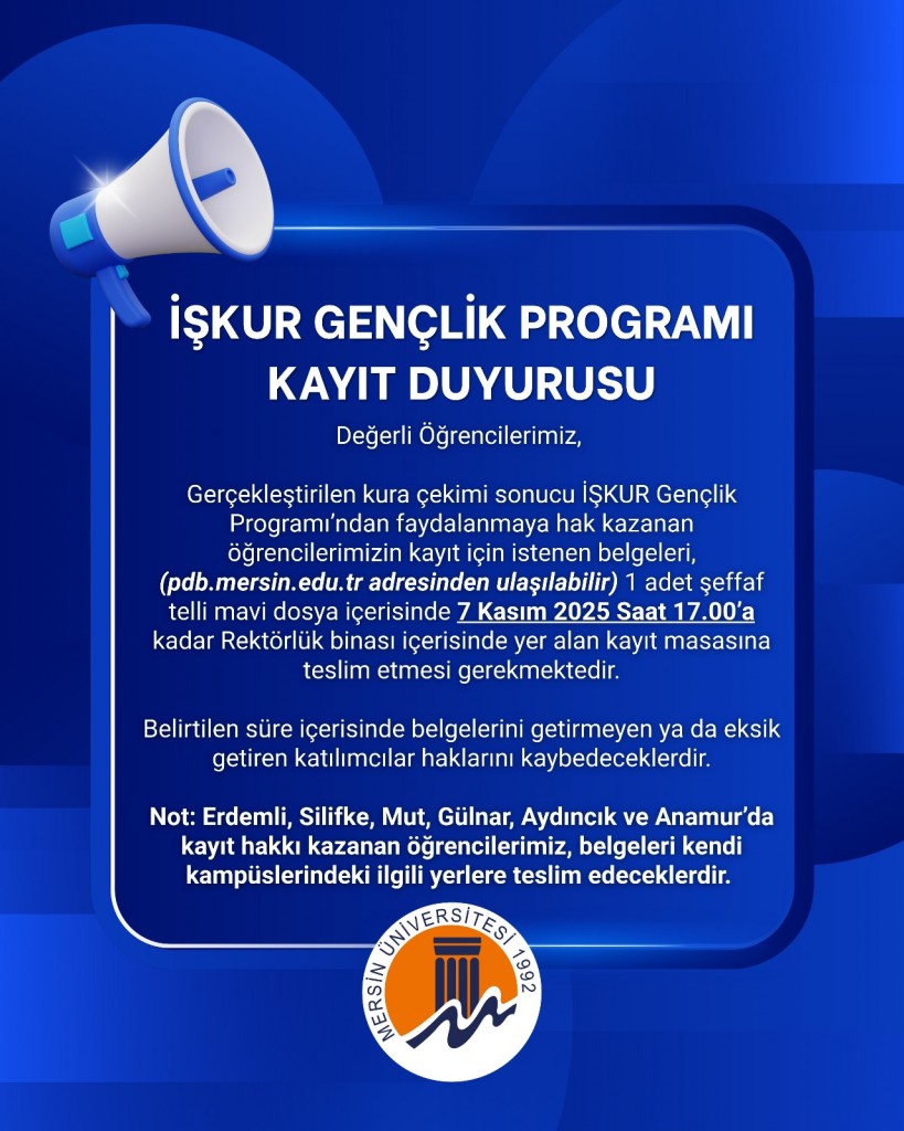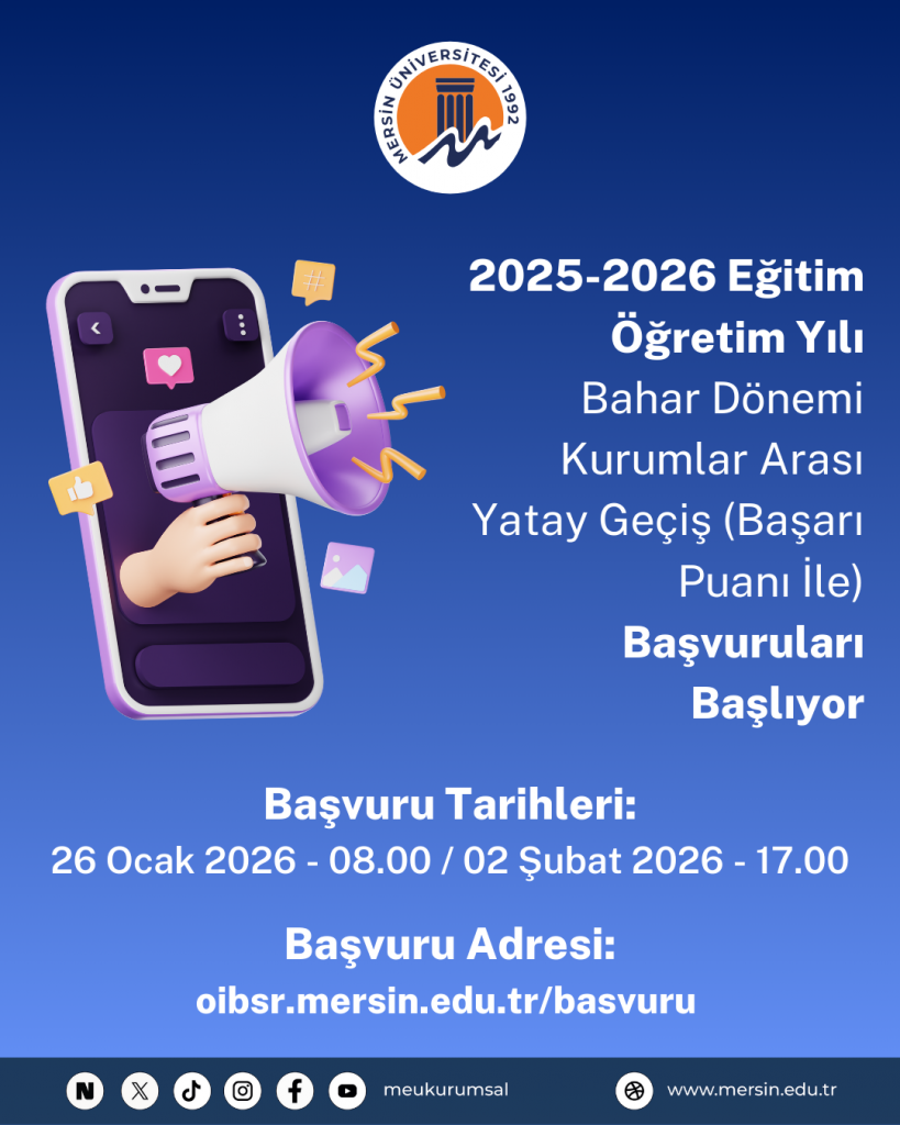 MERSİN ÜNİVERSİTESİ 2023-2024 EĞİTİM-ÖĞRETİM YILI GÜZ YARIYILI LİSANSÜSTÜ TEZSİZ YÜKSEK LİSANS PROGRAMLARINA BAŞVURU DUYURUSU
