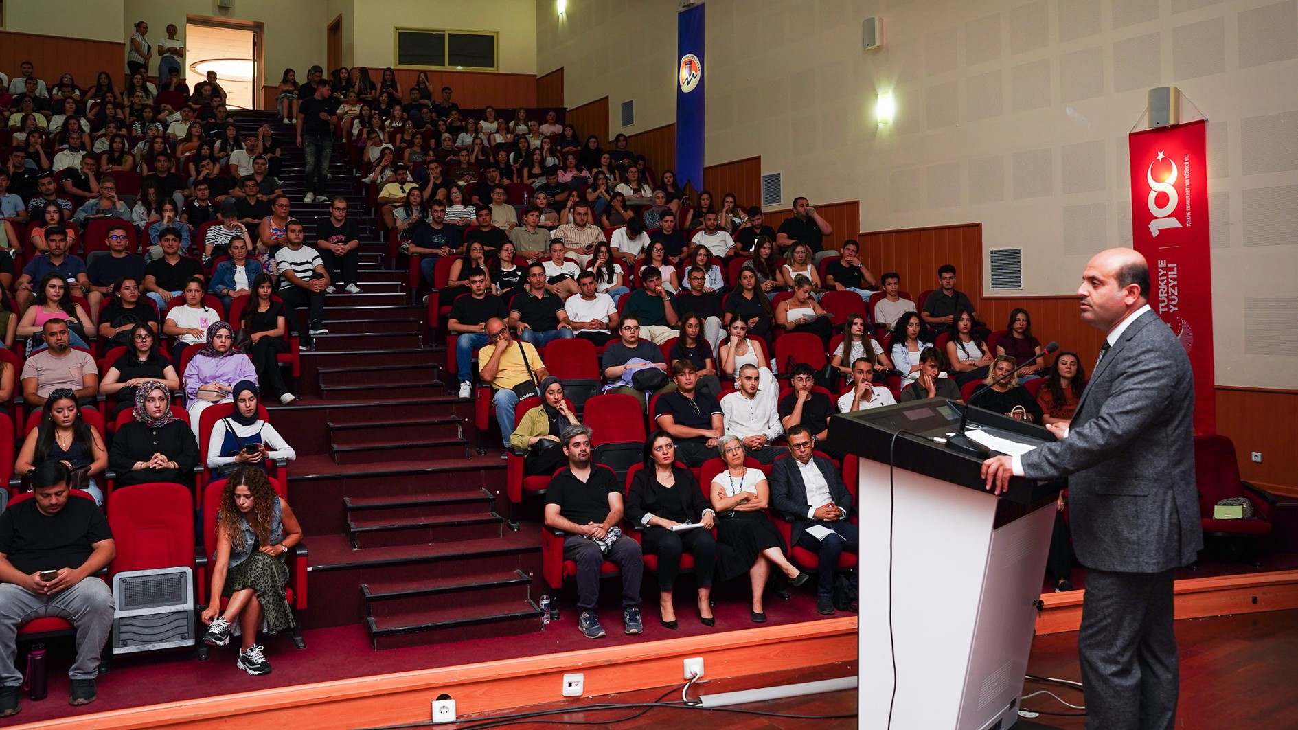Üniversitemiz Yabancı Diller Yüksekokulu'nda 2025-2026 akademik yılı için hazırlık sınıflarına yeni kayıt yaptıran öğrencilerimizin hazırlık sistemini tanımalarına yönelik oryantasyon programı düzenledi. 24 Eylül Çarşamba günü Üniversitemiz Prof. Dr. Uğur Oral Kültür Merkezi’nde gerçekleşen programa Yabancı Diller Yüksekokulu Müdürümüz Doç. Dr. M. Zeki Uyanık, öğretim elemanlarımız ve öğrencilerimiz katıldı.