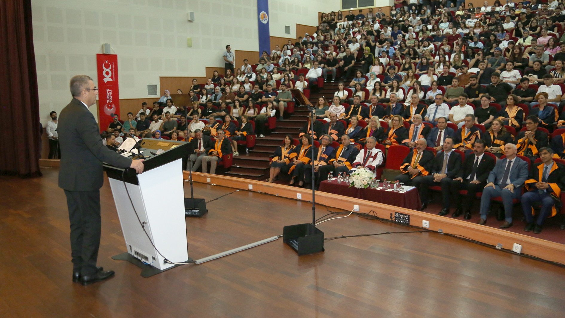 Öğrencilerimizin Üniversitemizde geçen yıllarının hem akademik hem de kişisel gelişimleri açısından hayatlarının en önemli dönüm noktalarından biri olacağına inandığını ifade ederek sözlerine başlayan Rektörümüz Prof. Dr. Erol Yaşar, “Sizler, ülkemizin geleceğini şekillendirecek; bilimin ışığında yol alacak, çalışkan ve üretken bireylersiniz. Üniversite sınavındaki başarınızdan dolayı her birinizi yürekten kutluyorum. Üniversite yalnızca bilgi aktarımının yapıldığı bir yer değil; aynı zamanda sosyal, kültürel, sanatsal ve sportif aktivitelerin de olduğu bir yaşam merkezidir. Bu merkezden en iyi şekilde faydalanmak, kendinizi sadece akademik olarak değil; sosyo-kültürel olarak da geliştirmek için sayısı 90’a yaklaşan öğrenci topluluklarımıza üye olun, düzenlediğimiz çeşitli aktivitelere katılın ve deneyimler elde edin.” ifadelerini kullandı.