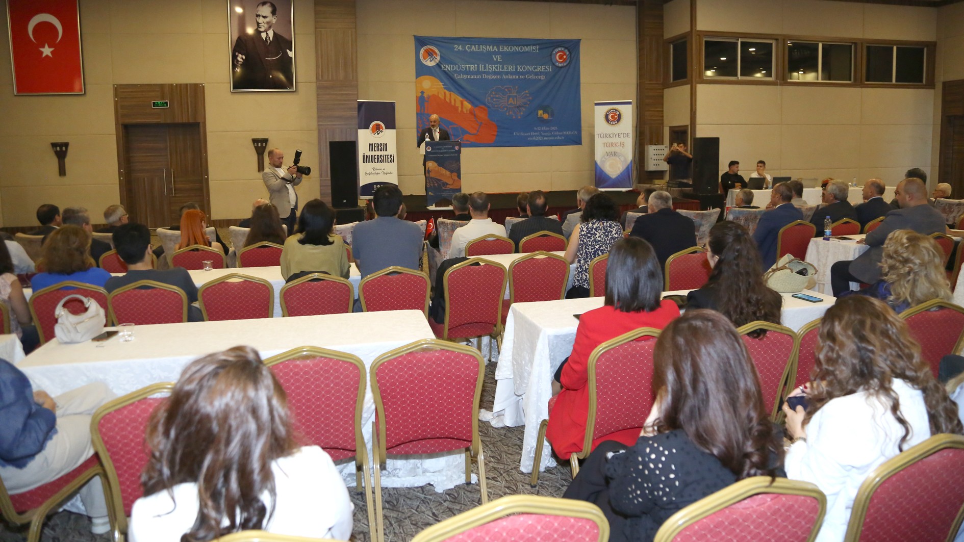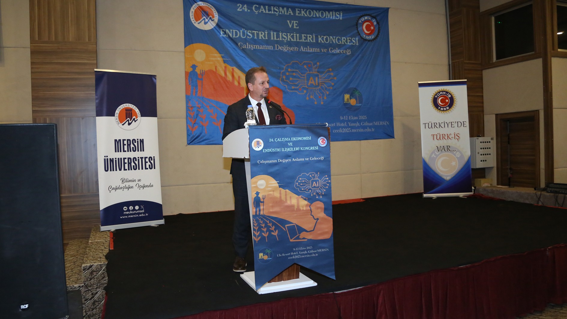 Üniversitemiz Çalışma Ekonomisi ve Endüstri İlişkileri Bölümü Başkanı Prof. Dr. Hasan Ejder Temiz konuşmasında “Böylesine güzide bir topluluğu Mersin’in Gülnar ilçesinde, bu özel ortamda bir araya getirmiş olmanın heyecanını ve mutluluğunu yaşıyoruz. Bu kongrenin gerçekleşmesinde katkı sunan tüm kurumlara, kuruluşlara ve bireysel destekçilere teşekkürlerimi sunuyorum. Bu yıl kongremizin ana teması “Çalışmanın Değişen Anlamı ve Geleceği” olarak belirlendi. Zira içinde bulunduğumuz çağ, çalışma hayatının yalnızca yapısal yönlerini değil, aynı zamanda anlam dünyasını da derinden dönüştürüyor. Dijitalleşme, yapay zekâ, esnek çalışma modelleri, platform ekonomileri ve küresel belirsizlikler gibi dinamikler, çalışma biçimlerini olduğu kadar çalışmanın birey ve toplum nezdindeki değerini de yeniden şekillendiriyor. Akademik camia, politika yapıcılar ve sosyal taraflar olarak bu dönüşümü anlamak, doğru okumak ve yönlendirmek hepimizin ortak sorumluluğudur.” dedi.