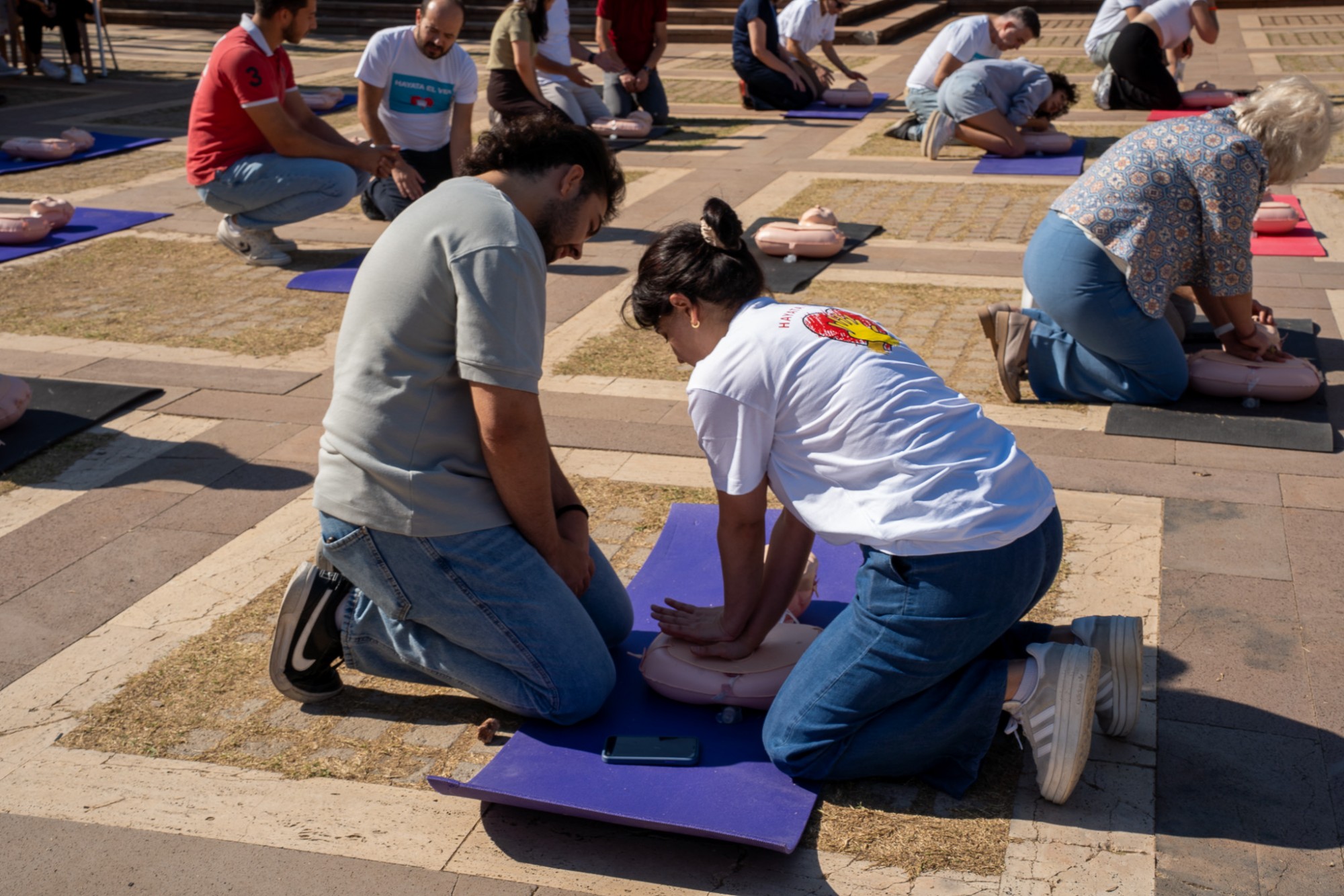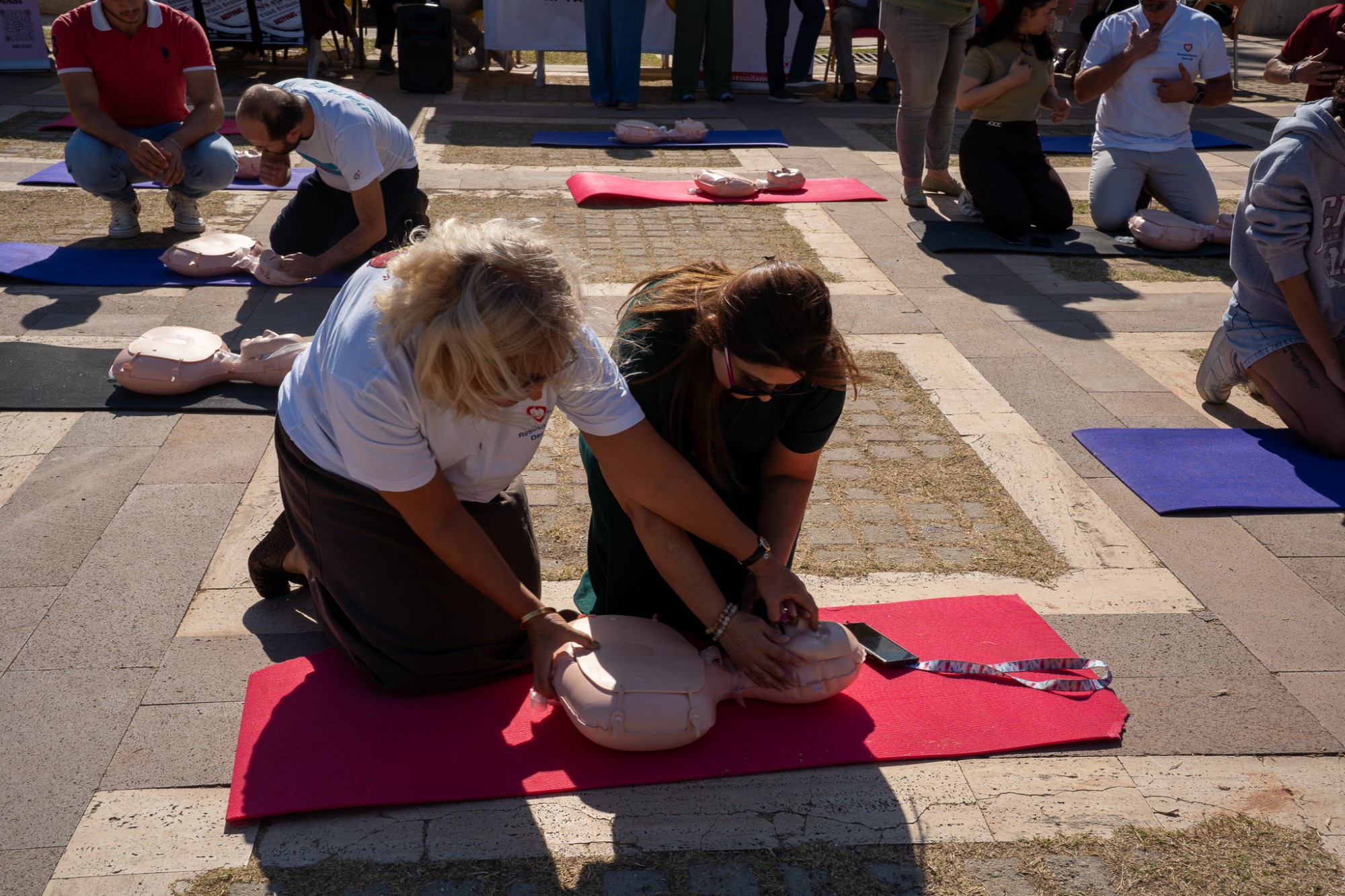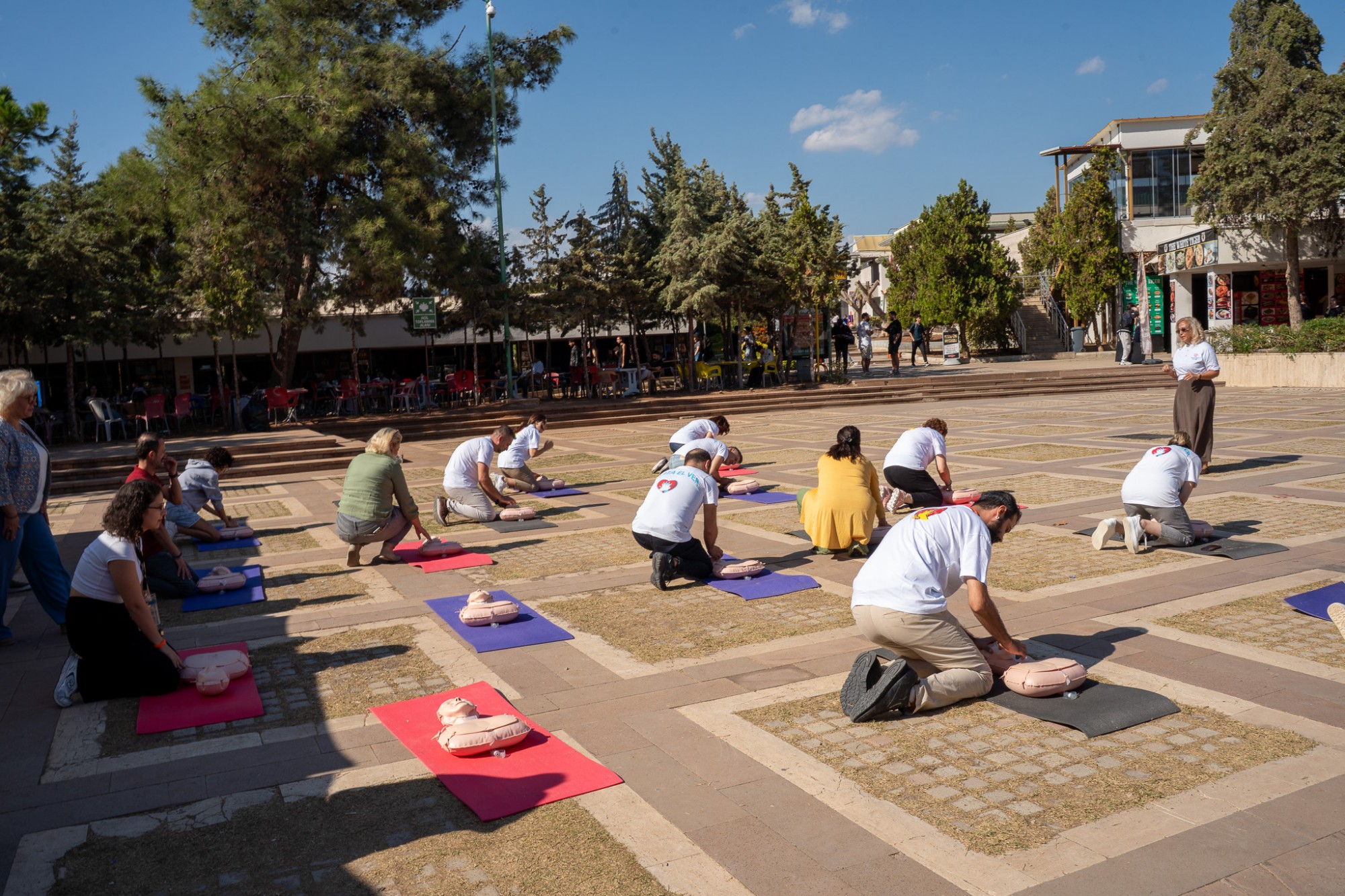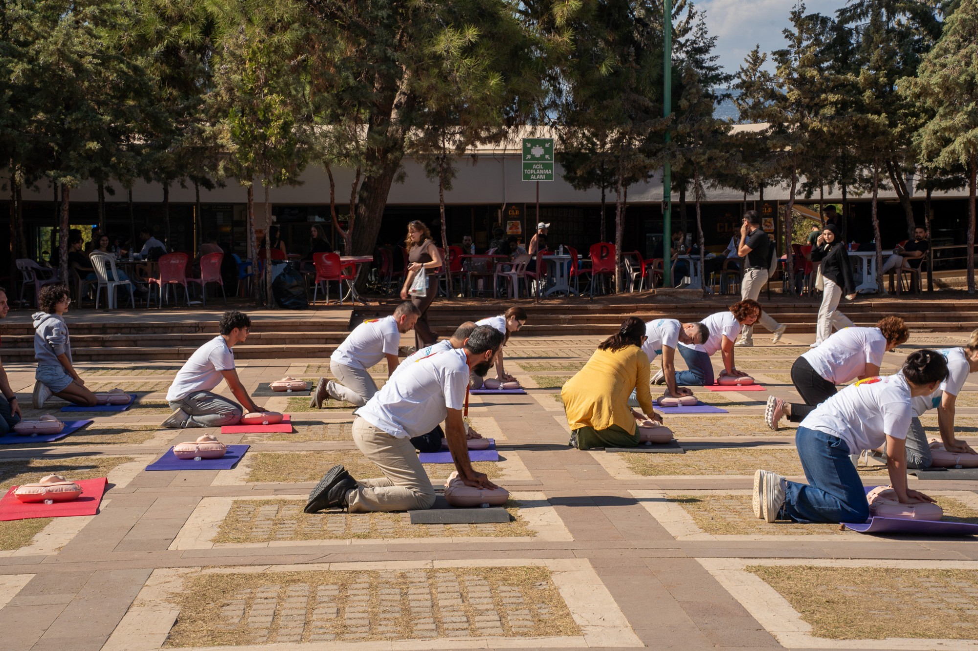 Etkinlikte, ani kalp durması durumlarında yapılması gereken Temel Yaşam Desteği (TYD) uygulamalarının toplumun geniş kesimlerine öğretilmesi ve erken müdahale bilincinin artırılması amaçlandı. Bu kapsamda, Tıp Fakültemiz Anesteziyoloji ve Reanimasyon Anabilim Dalı akademik personeli ile Resüsitasyon Derneği üyeleri tarafından gönüllü katılımcılara temel yaşam desteği uygulamaları öğretildi.