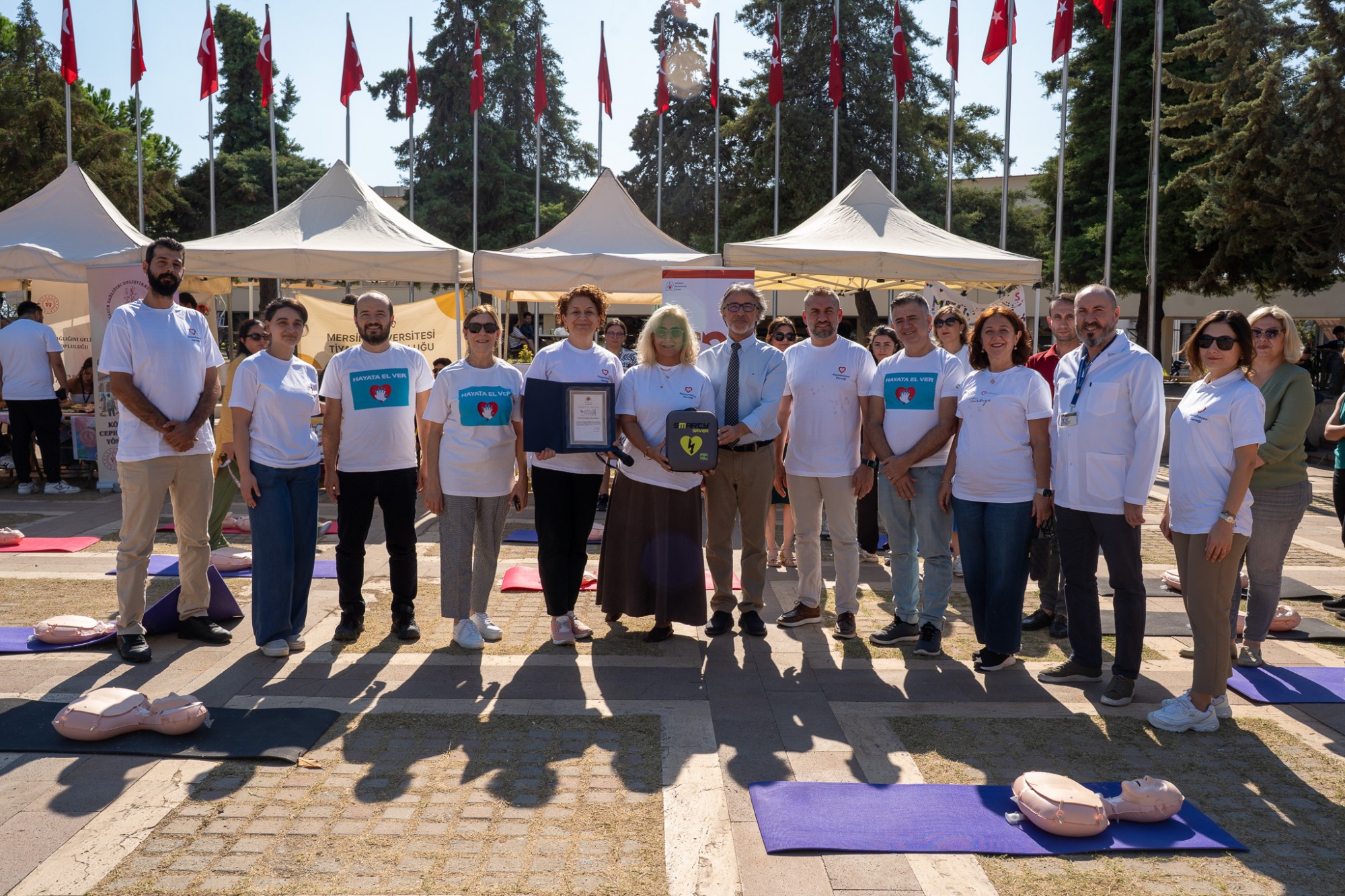 Etkinlikle ilgili bilgi veren Tıp Fakültesi Anesteziyoloji ve Reanimasyon Anabilim Dalı Başkanı Prof. Dr. Handan Birbiçer, “Bu proje, yalnızca ülkemizde değil, Avrupa ülkelerinde de yürütülen uluslararası bir farkındalık hareketinin parçasıdır. Her yıl 16 Ekim, birçok Avrupa ülkesinde ‘Kalp Durması Konusunda Farkındalık Günü’ olarak kutlanmakta; bu tarihte toplumun yaşam kurtarma konusundaki bilgi ve becerilerini geliştirmeye yönelik etkinlikler düzenlenmektedir. Dernek tarafından kliniğimize hediye edilen otomatik eksternal defibrilatör cihazı, erken müdahale zincirinin önemine vurgu yapan sembolik bir armağan olmuştur. Mersin Üniversitesi olarak, her bireyin acil bir durumda yaşama dokunabilecek bilgi ve beceriye sahip olmasının hayati önemde olduğuna inanıyor; toplumda farkındalık oluşturmak ve daha fazla hayat kurtarmaya katkı sağlamak amacıyla ‘Hayata El Ver’ diyoruz.” ifadelerini kullandı.