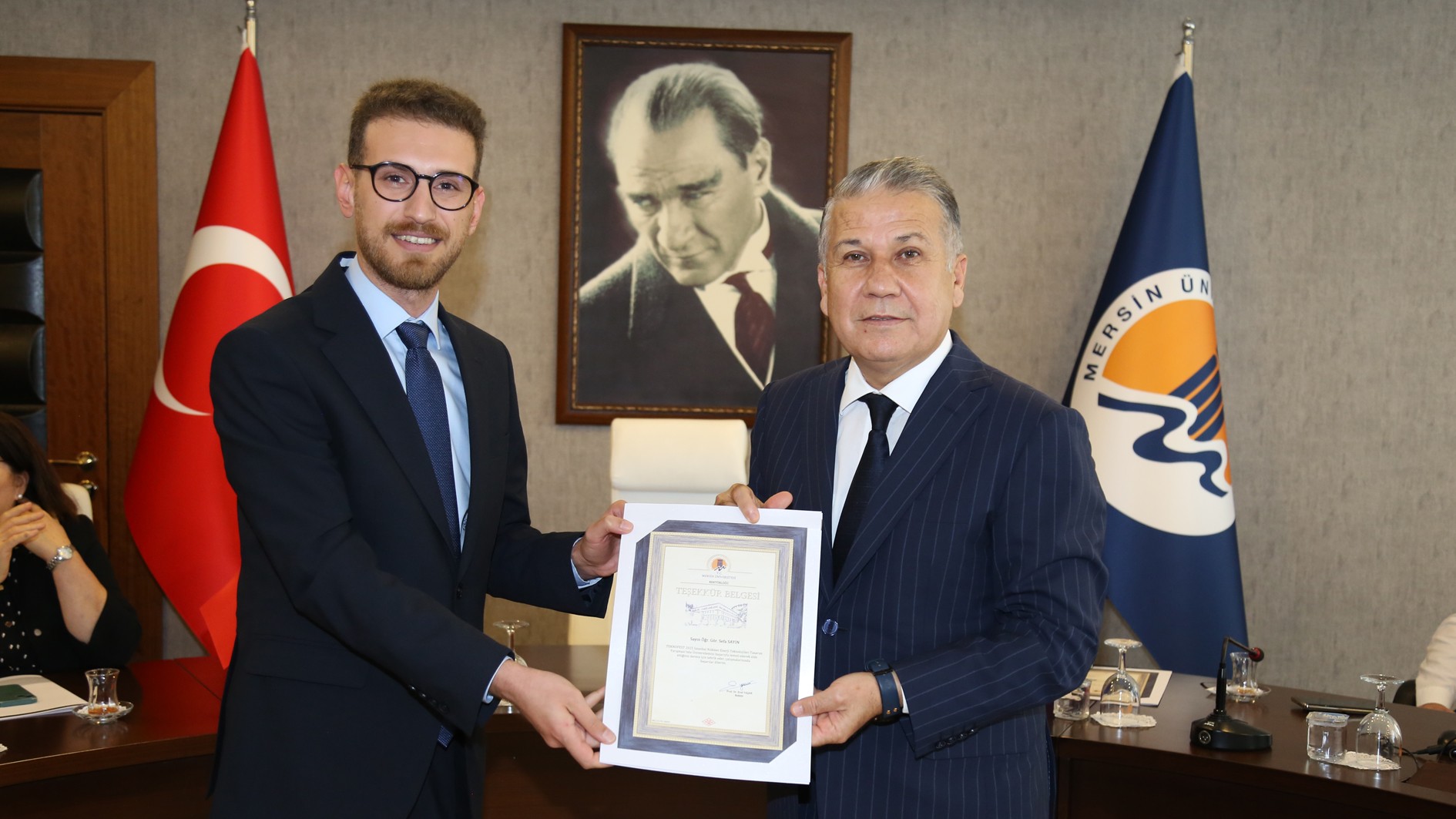 Konuşmaların ardından, TÜBİTAK 2209 projeleri kapsamında başarılı olan akademik birim temsilcilerine teşekkür belgeleri Rektörümüz Prof. Dr. Erol Yaşar tarafından takdim edildi.