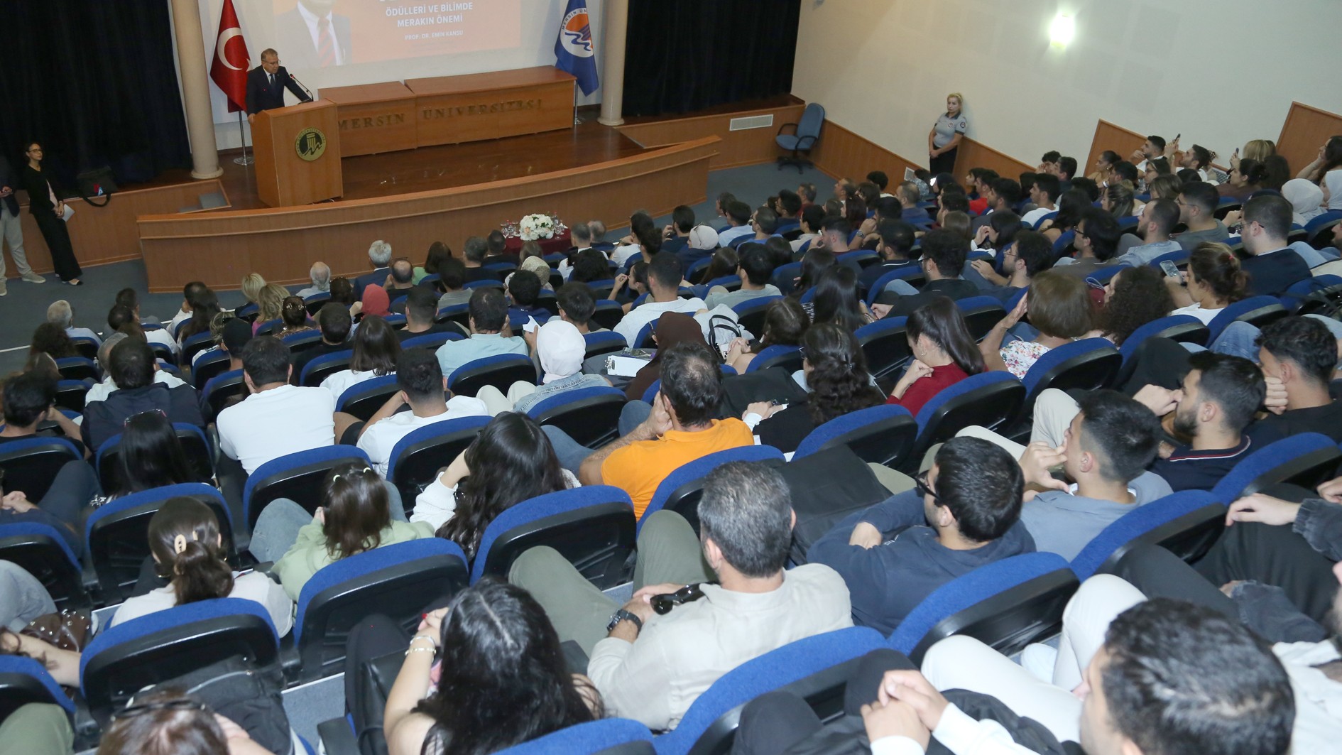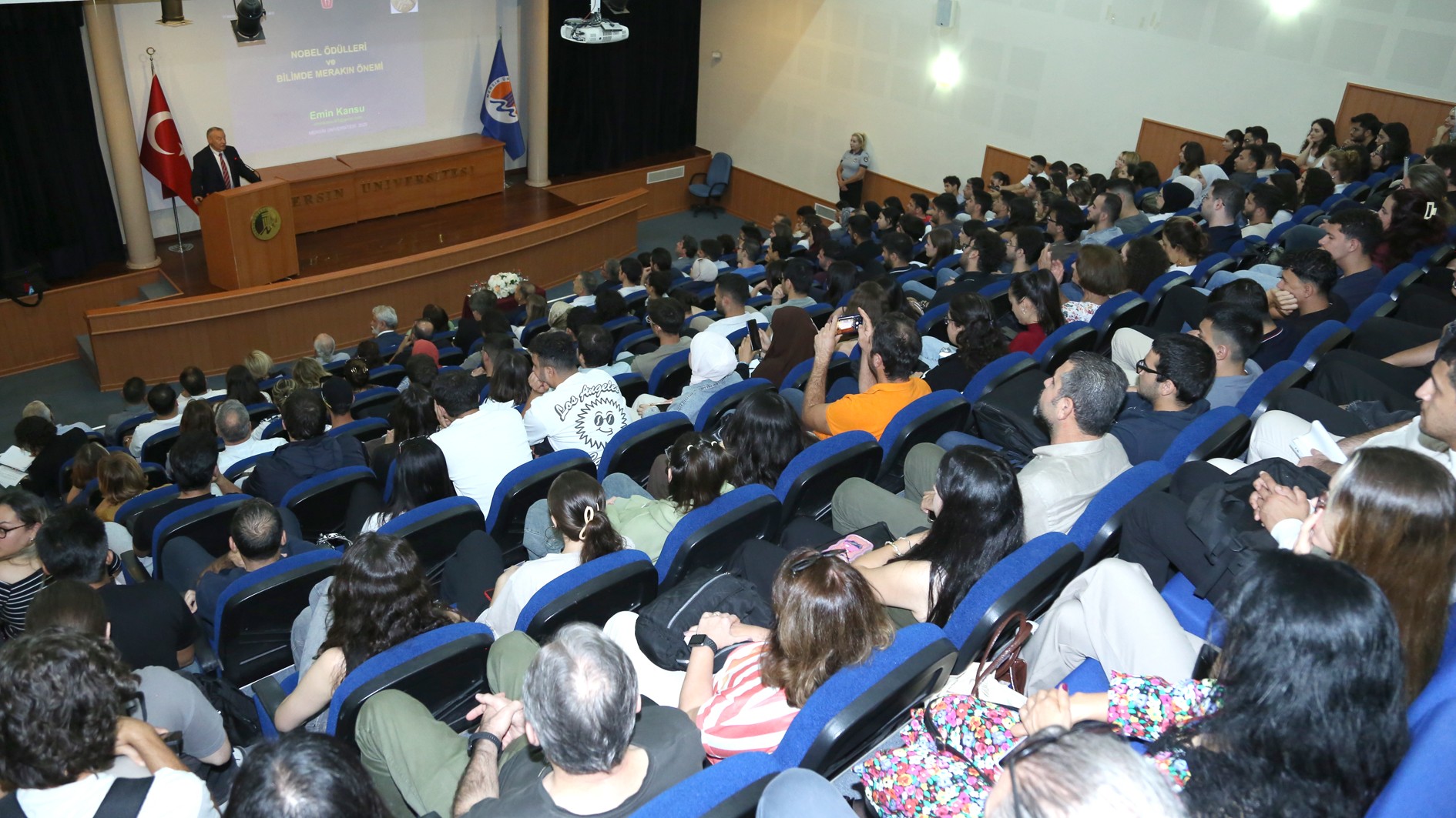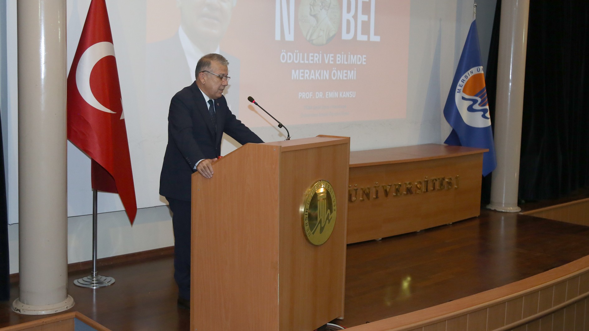 Prof. Dr. Emin Kansu, 1901’den günümüze kadar Nobel Ödülü kazanan bilim insanlarının ilham verici hikayelerini, çalışma disiplinlerini, süreçleri anlattığı konferansta bu ödülü kazanan Türk bilim insanı Aziz Sancar’dan da bahsetti. Prof. Dr. Kansu, Prof. Dr. Sancar’ın Nobel başarısının bilim dünyası için çok önemli olduğunu, ülkemiz için de büyük bir gurur kaynağı olduğunu söyledi.