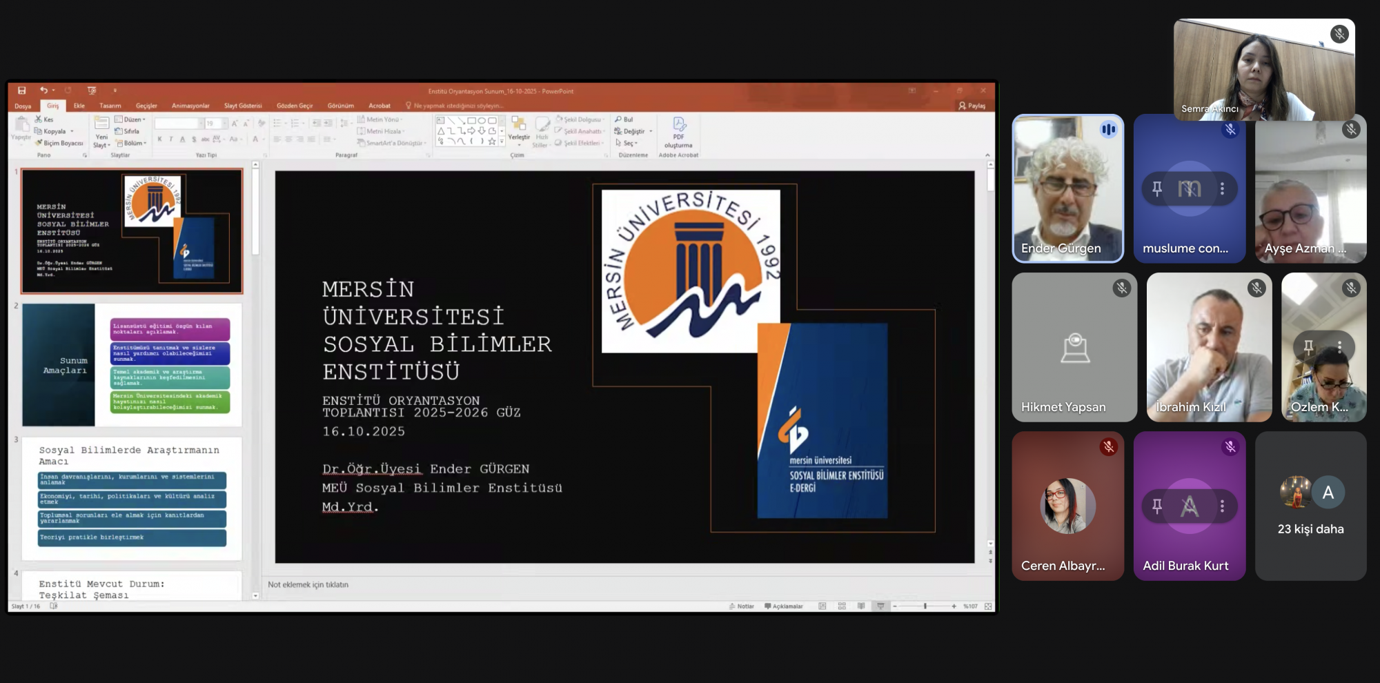 2025-2026 eğitim öğretim döneminde Üniversitemiz Sosyal Bilimler Enstitüsü bünyesindeki lisansüstü programlarına kayıt olan öğrencilerimize yönelik çevrimiçi oryantasyon eğitimi verildi. 16 Ekim 2025 Perşembe günü